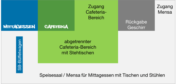 Durch das ausgeweitete Angebot ändern sich die Abläufe in der Mensa wie die Ausgabe der Mittagessen und der Verkauf in der Cafeteria: